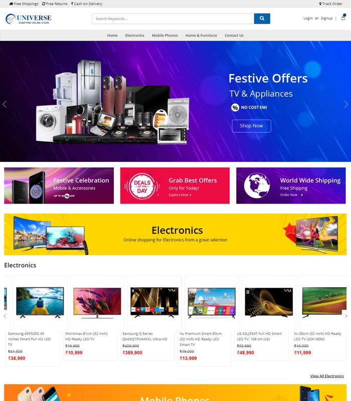 Create a Grocery, Cosmetic, Fashion or Electronics website backed by powerful tools that help you find customers, drive sales, and manage your day-to-day.